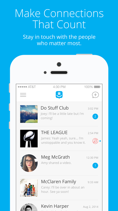 Add anyone to a group via their phone number or email address. If they don’t have the app, they can start chatting over SMS immediately.